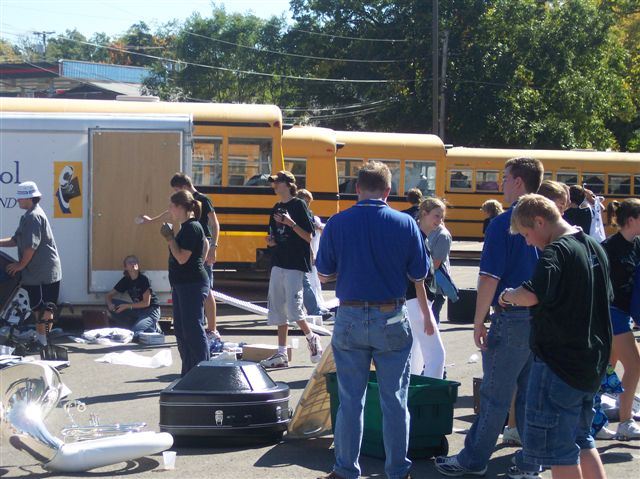 After Pre-game, we will head back to change and load the bus. You must have your band shirt on in order to reenter the game. One Bus will come back early.