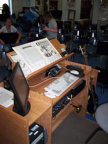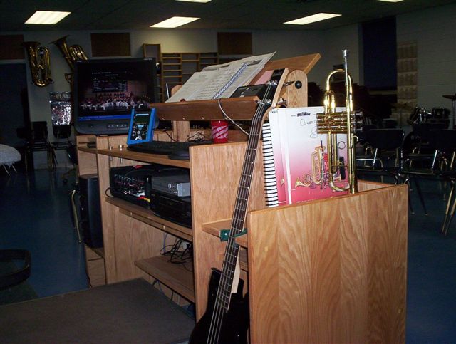 Thanks to fundraising efforts from band and choir students, we have now added some exciting new technologys to our High School Music Room. Upgrades include a new 50 inch plasma screen, 3GHZ computer, 19 inch monitor, M-Audio Pre-Amp, Sony Sound Forge software, Smart Music Studio 9.1, a PA with wireless microphone and Tv capture card just to name a few. Students in our Middle School band recently raised money to fund a new and exciting addition to our technology equipment in the Middle School band room. Upgrades include a 100 inch screen, 3GHZ computer, 19 inch monitor, VCR, DVD, PA, wireless mic, Smart Music Studio software package, projector and an awesome oak conducting stand built by Mr. McClard and Mr. Knupps. With this package we will be able to totally transform our method of teaching at the beginning band level. We will also be able to expand jazz education and solo and ensemble training.