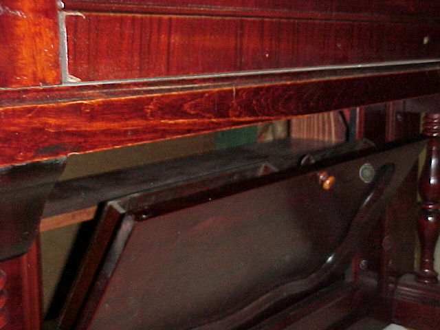 fallboard. The desk has a magazine rack hidden in